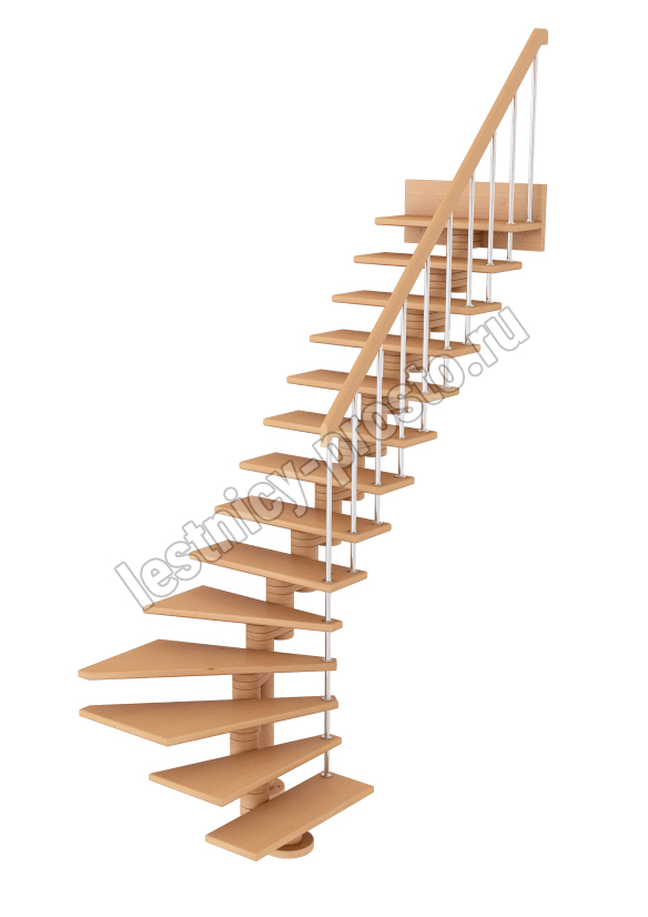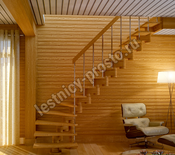 Базовый комплект включает в себя деревянные элементы лестницы и ограждения без какого-либо покрытия.