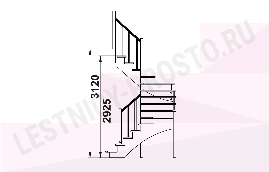 Схема лестницы К-103М с поворотом налево