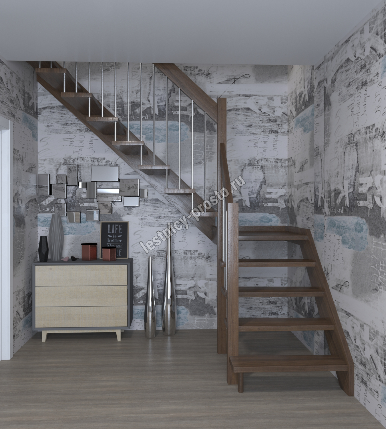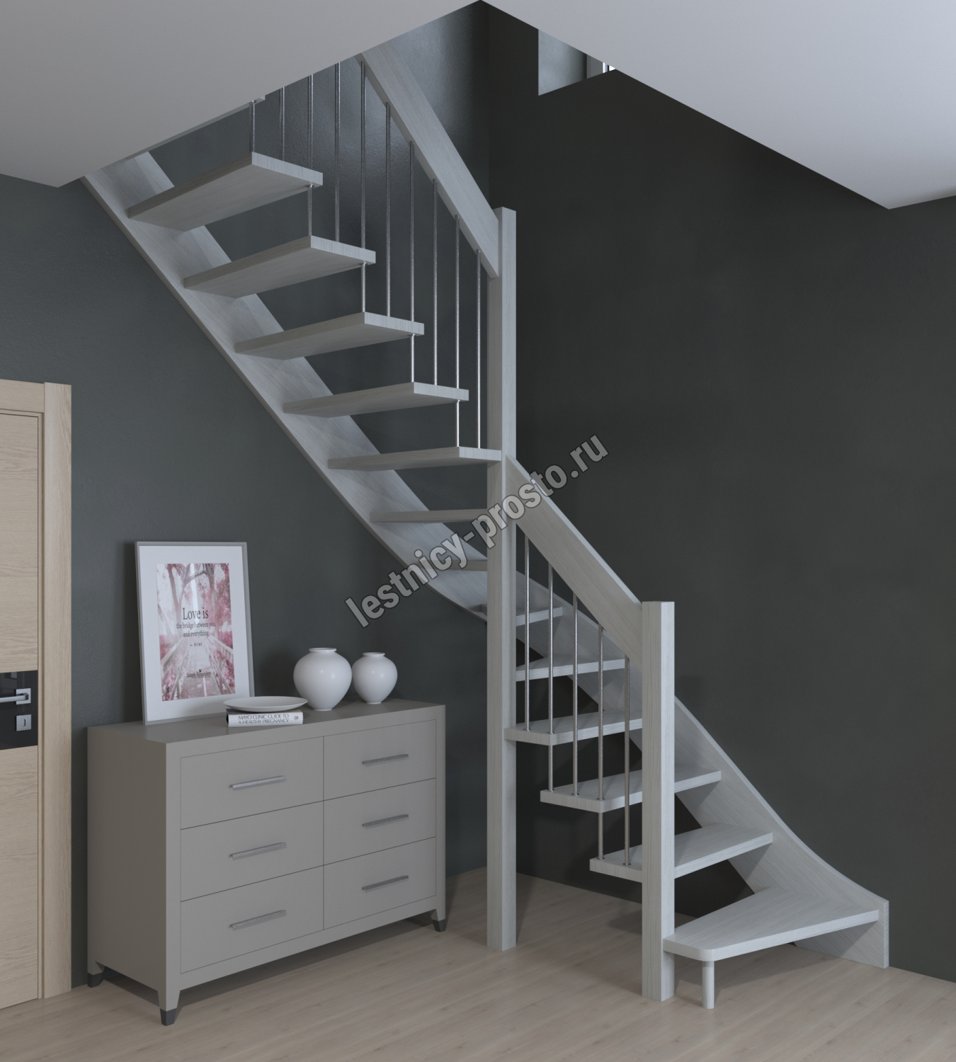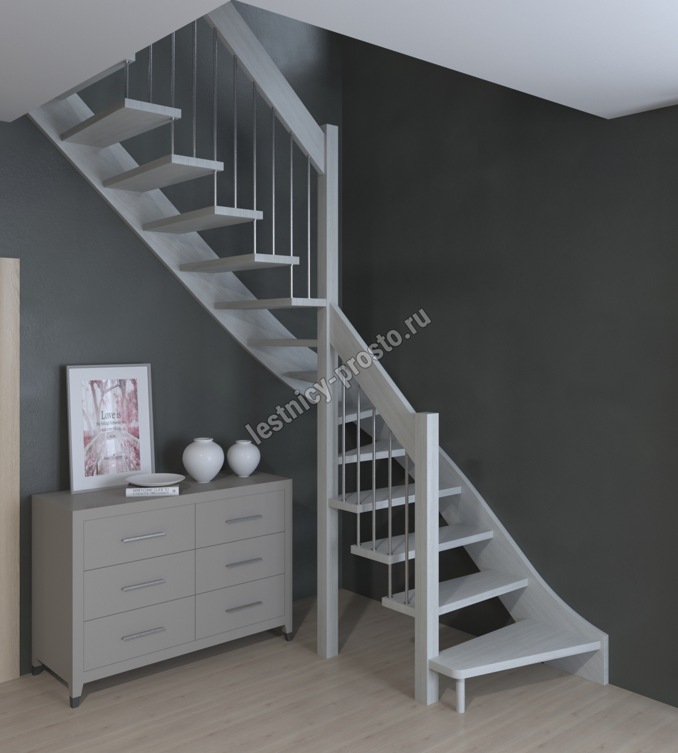Лестница Prosto Console г-образная забежная ясень, h260 см