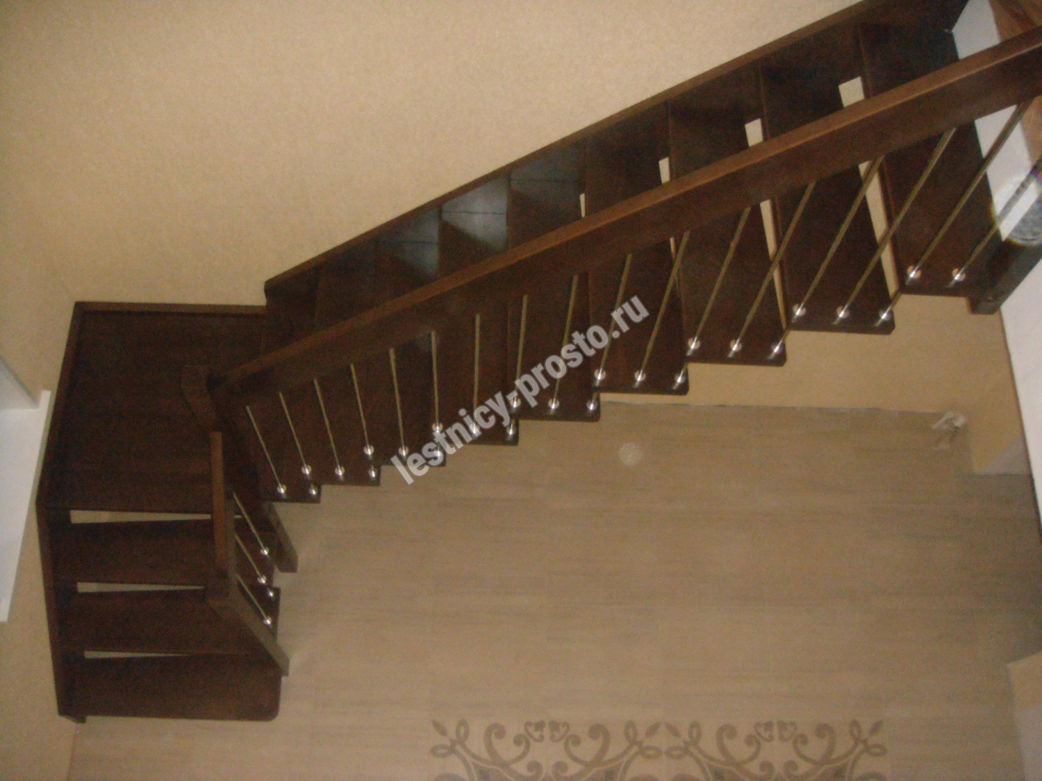 возможна комбинированная лестница: из сосны (ступени бук, ясень, дуб);