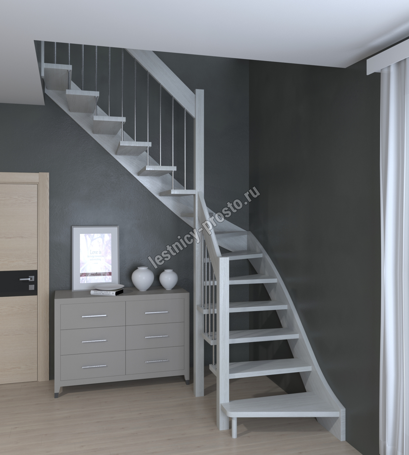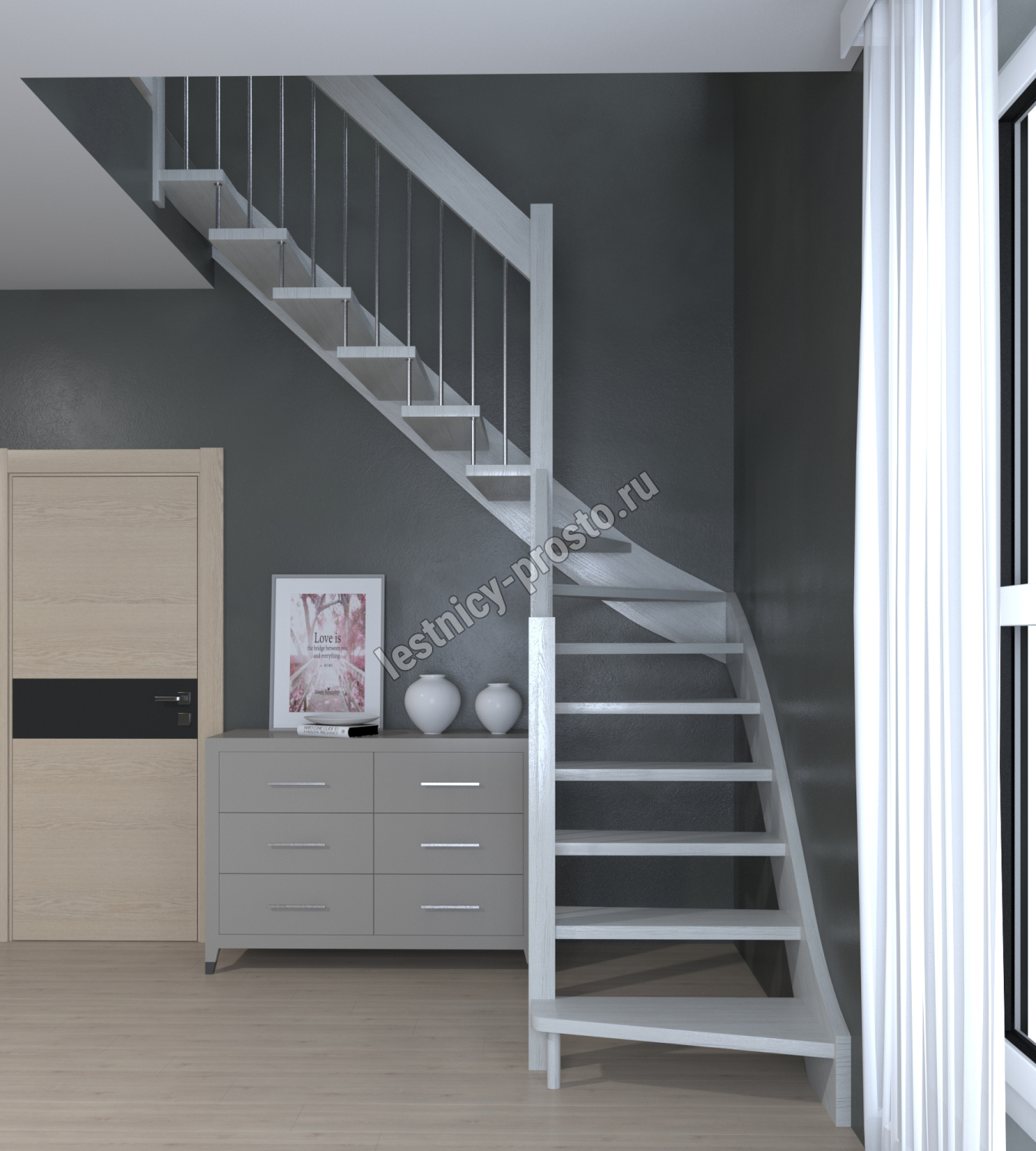 Лестница Prosto Console г-образная забежная ясень, h320 см