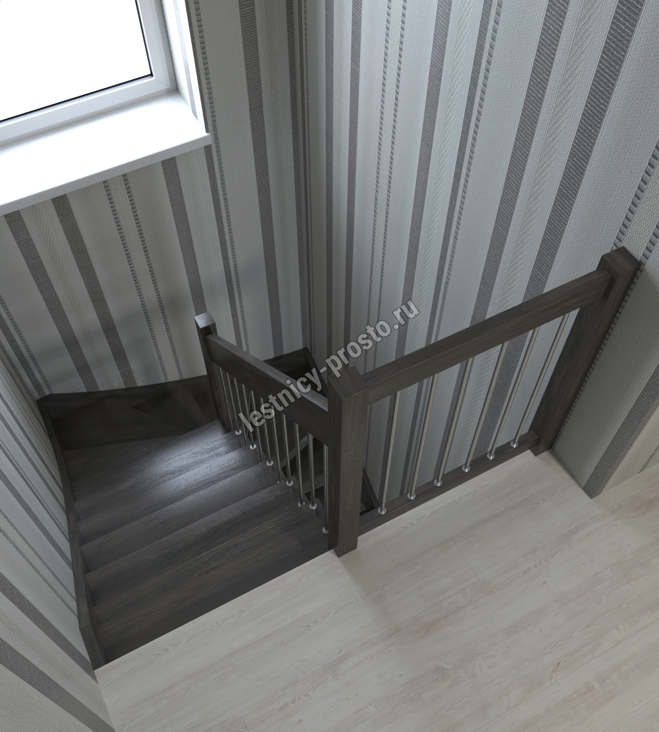 Вид лестницы по реализации поворота: с поворотом на 90° через площадку, с поворотом на 90° через 4 забежные ступени;