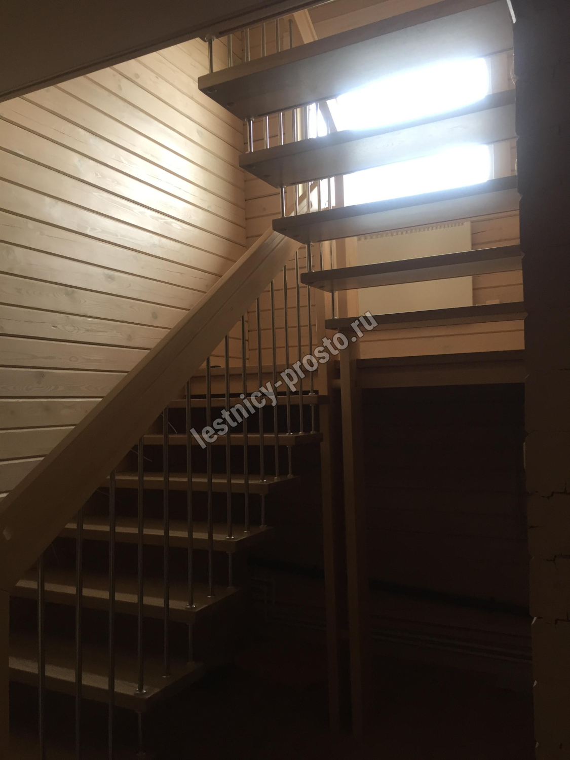 возможна комбинированная лестница: из сосны (ступени бук, ясень, дуб);