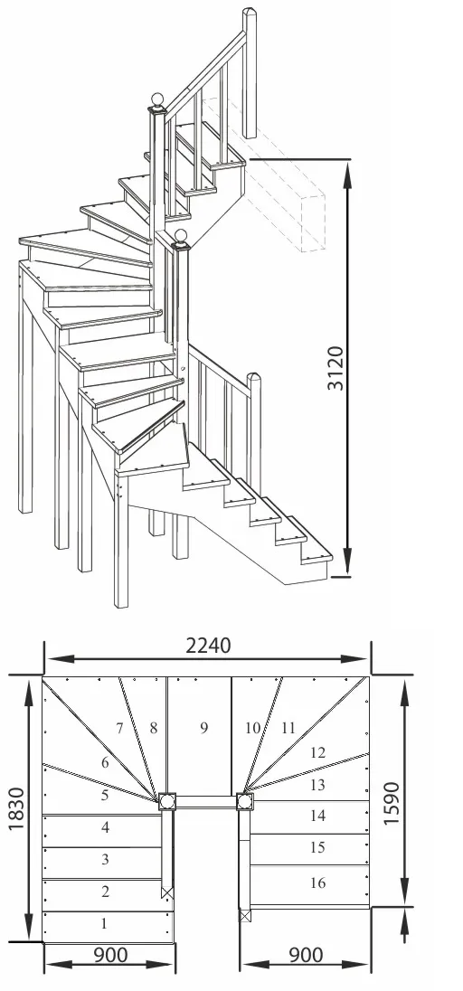 Комплектация Элементы лестницы, ограждение, крепёж, инструкция по сборке