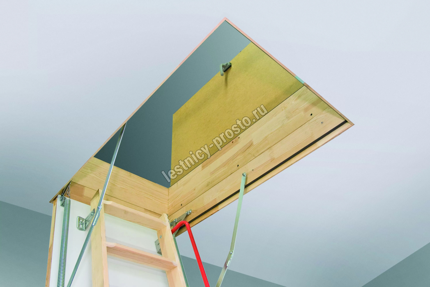 Защитный верхний короб LXW RU высотой 20 см улучшает параметры теплоизоляции, герметичности и защиты лестницы. Предохраняет пространство вокруг лестницы от пыли и грязи со стороны чердака. Толщина крышки с утеплителем – 36 мм. Короб оборудован специальной газовой пружиной, которая обеспечивает плавное управление и фиксацию крышки в открытом положении.