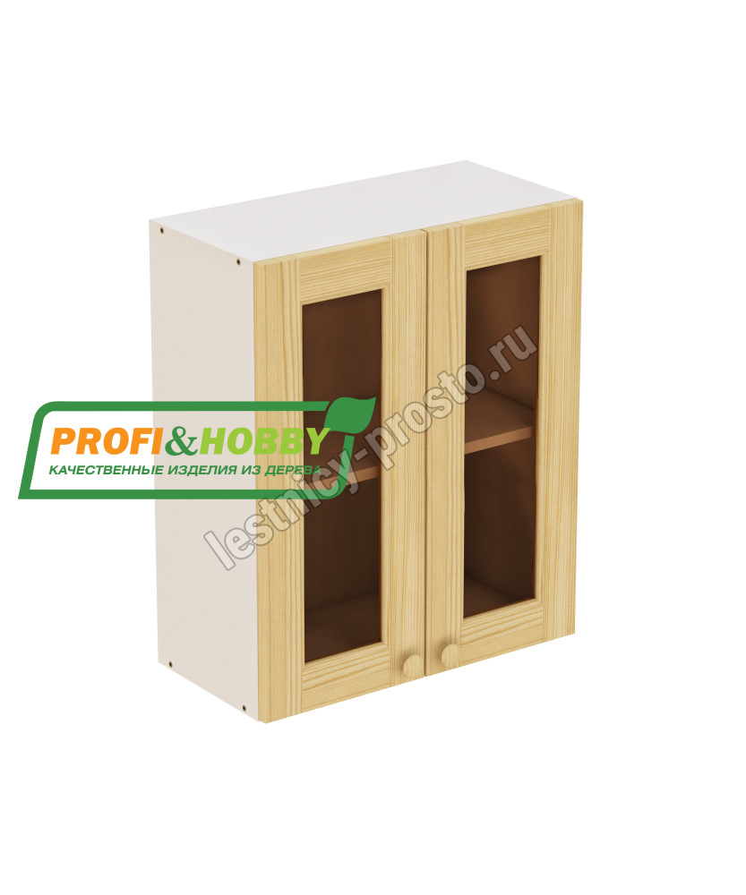 Шкаф навесной 2 двери 600х340х720 + фасад под стекло сосна без покраски