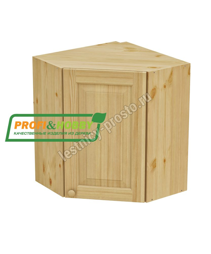 Шкаф навесной угловой 600 х 600 х 300 х 720 филенка, сосна, бесцветный акриловый лак
