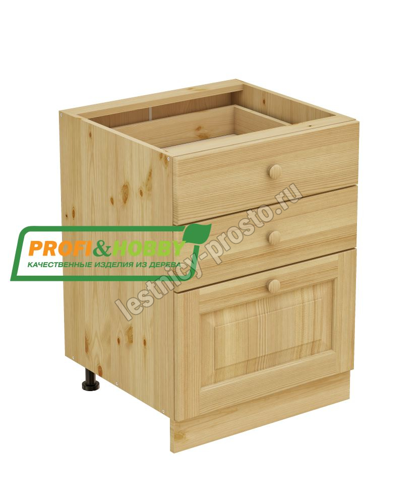 Тумба 3 ящика 600 х 560 х 720 сосна, бесцветный акриловый лак