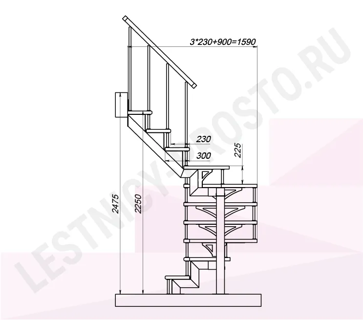 Высота лестницы 2250 - 2475 (10 ступеней) мм