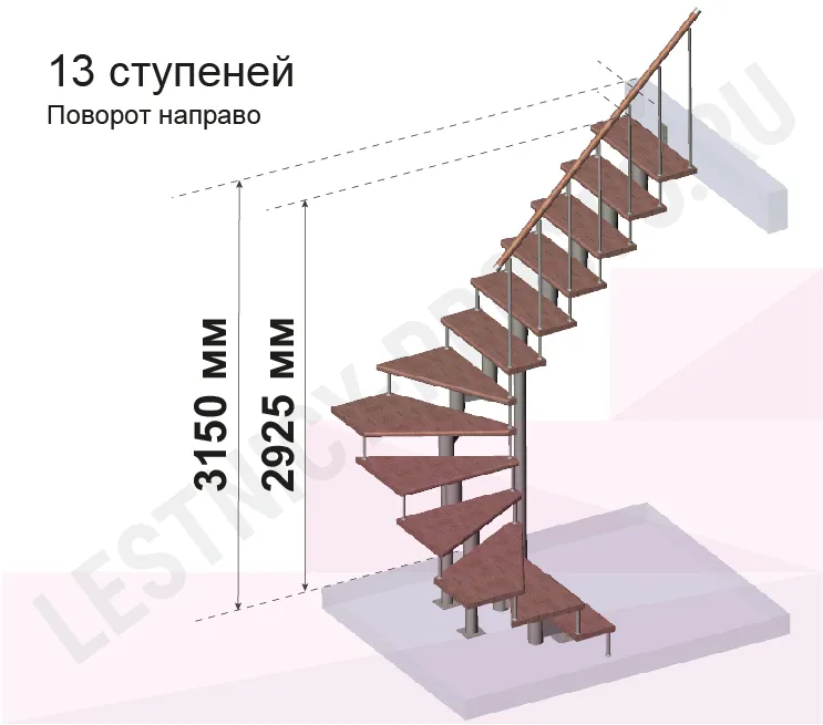 Высота лестницы 2925 - 3150 (13 ступеней) мм