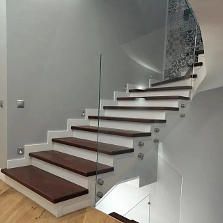 Лестница из стекла/дуба/керамогранита с подстветкой LP-1-53