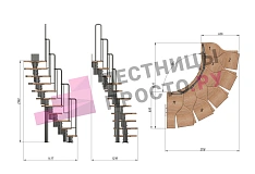 Лестница Prosto Urban Black гусиный шаг 600 мм, h198-288 см (11 ступеней), ясень