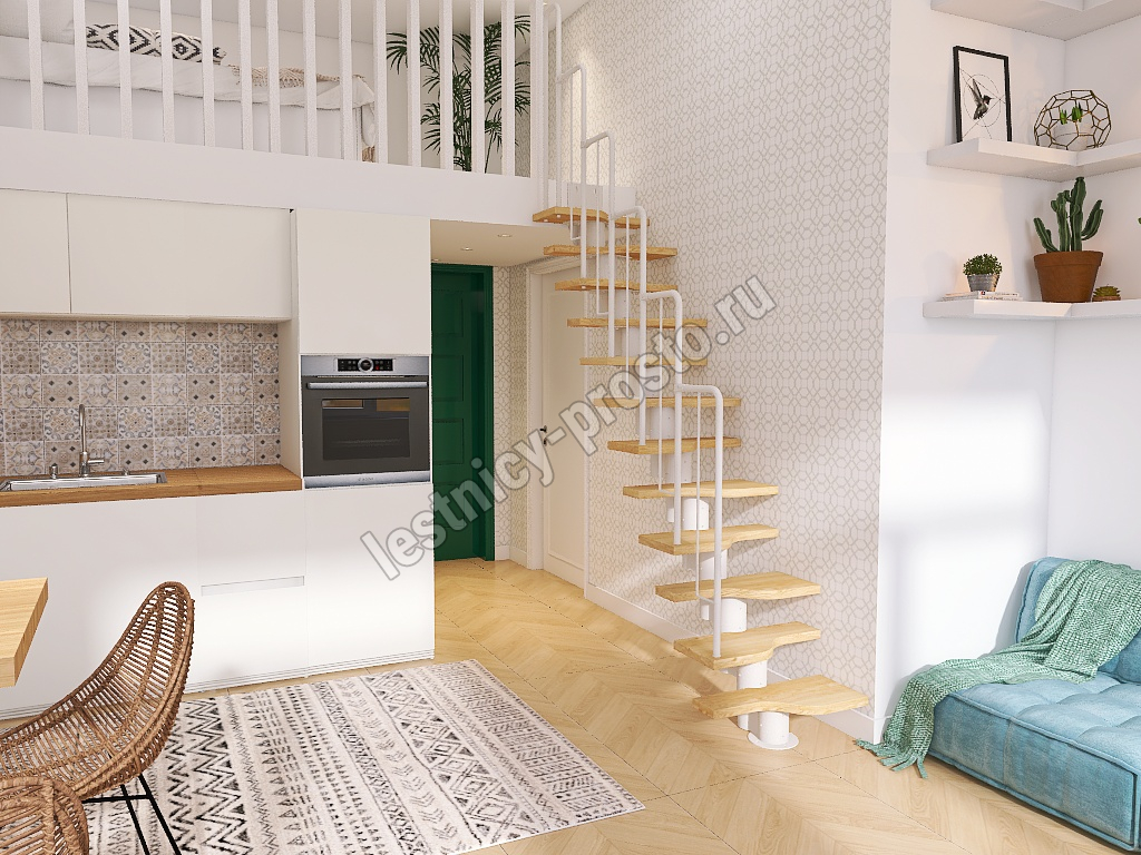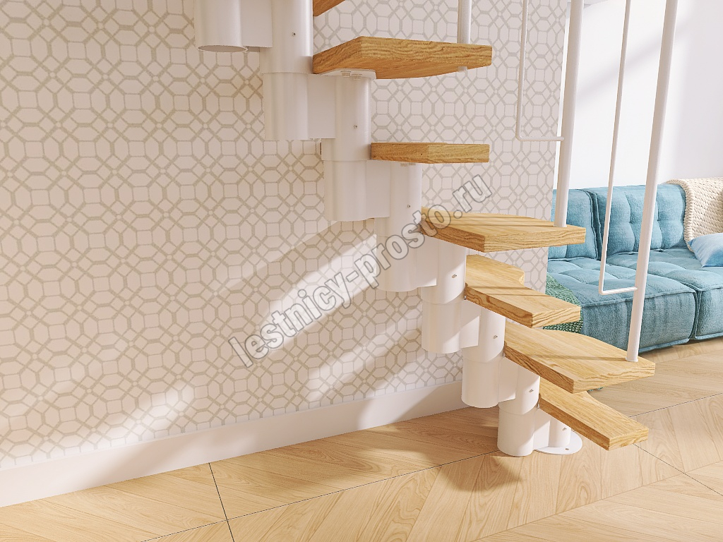 Лестница Prosto Urban White гусиный шаг 700 мм, h180-264 см (10 ступеней), дуб