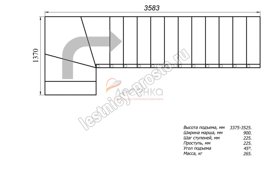 Модульная лестница Фаворит 225 3375-3525, Черный, Сосна, Крашеная, Без Ступений