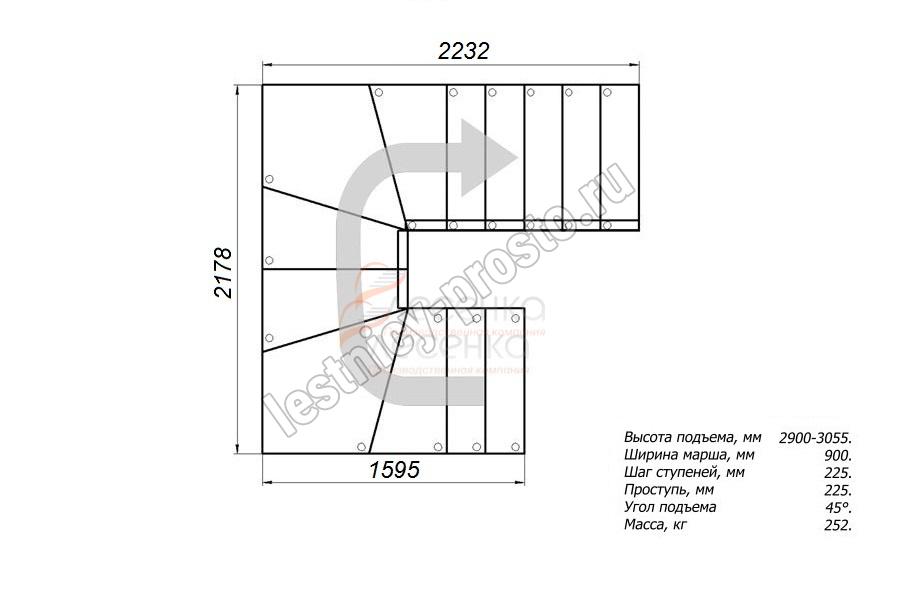 Модульная лестница Спринт 225 2925-3055, Серый, Лиственница, Крашеная