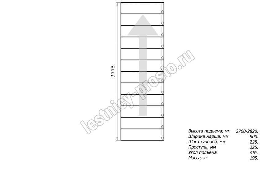 Модульная лестница Стандарт 2700-2820, Белый, Лиственница, Нержавеющая сталь