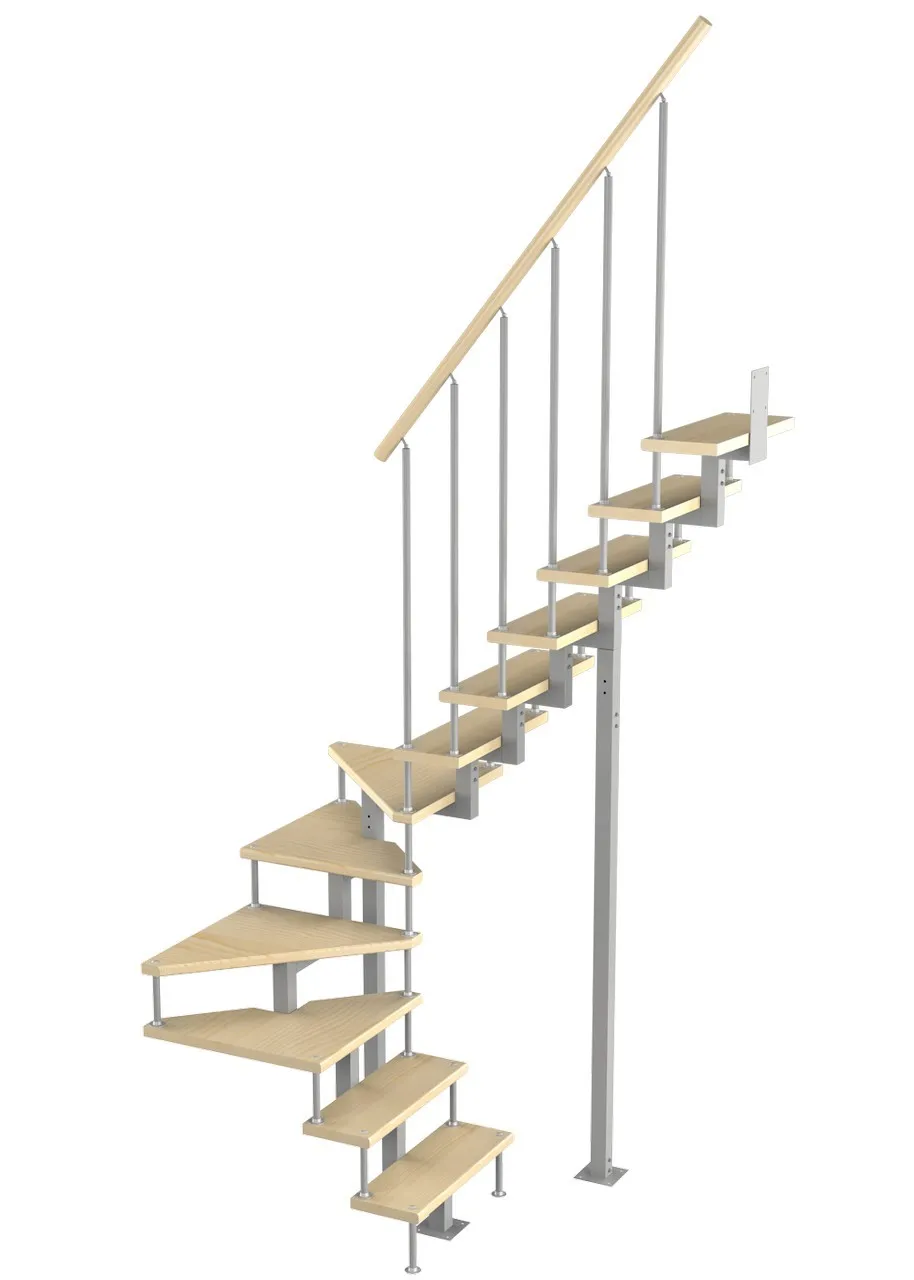 Модульная малогабаритная лестница Эксклюзив 2250-2475, Серый, Бук, Крашеная