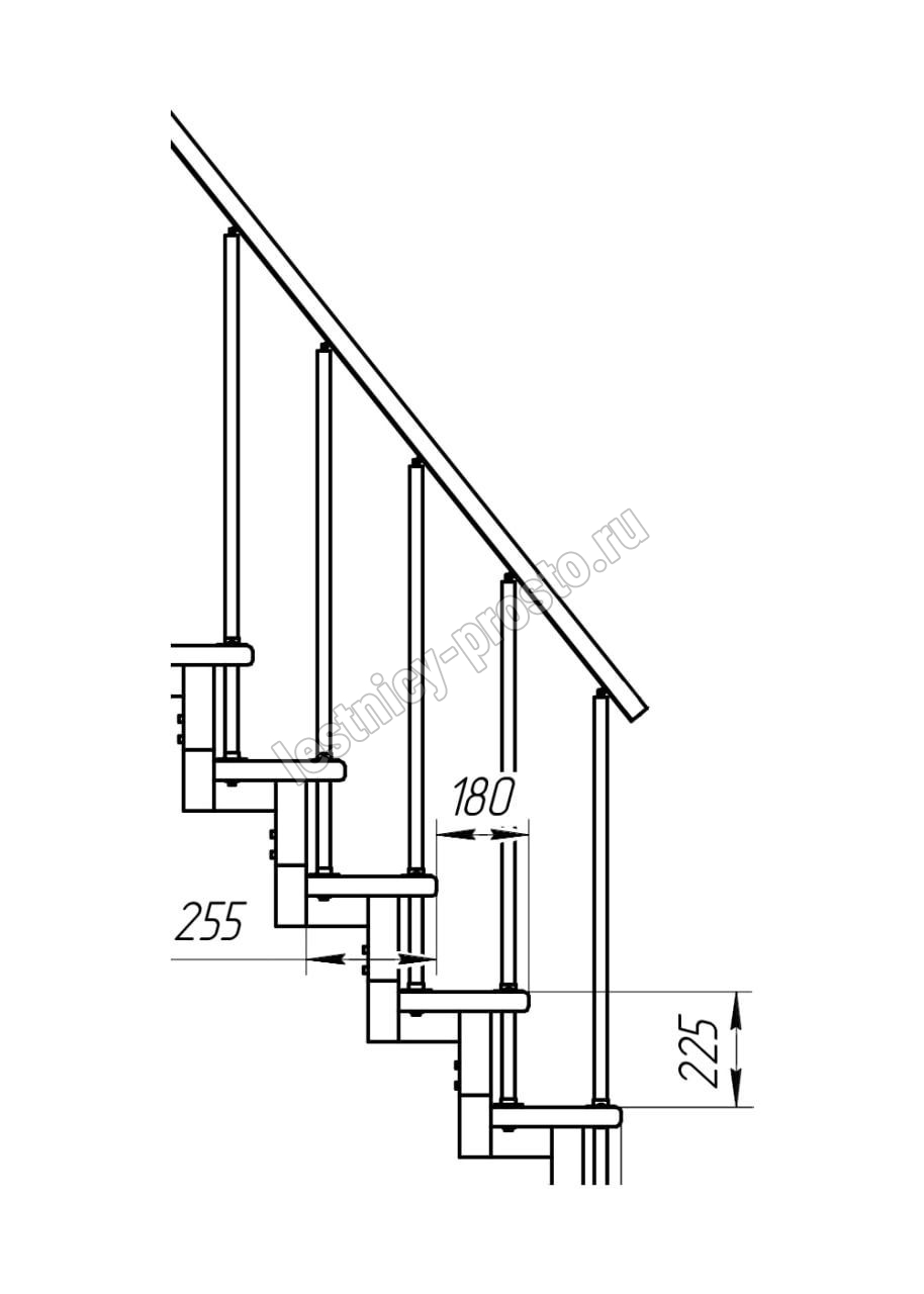Модульная малогабаритная лестница Линия 2250-2475, Серый, Сосна, Нержавеющая сталь