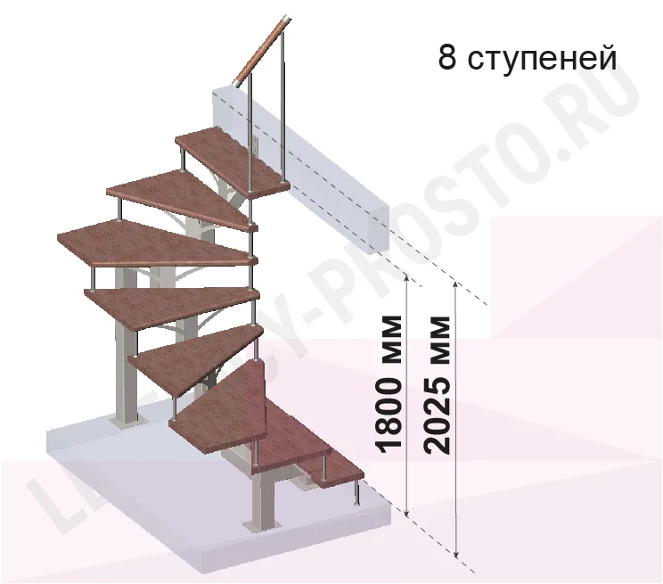 Лестница PROSTO MONO П-образная, h225 см, ступени хвоя |