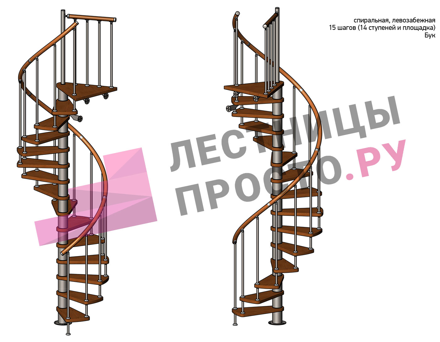 Левая, d=120см, 14 ступеней + площадка