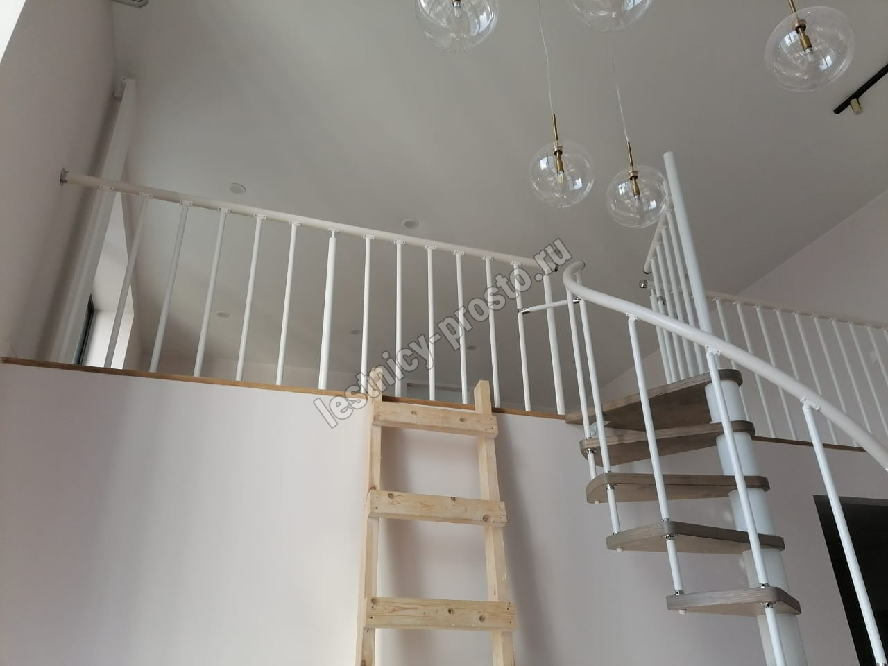 Винтовая лестница Prosto Spiral White D160см, h282.2-326,3 см, бук |