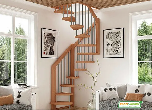 Винтовая лестница SPIRAL EFFECT d140 см, серебро, лакированный бук