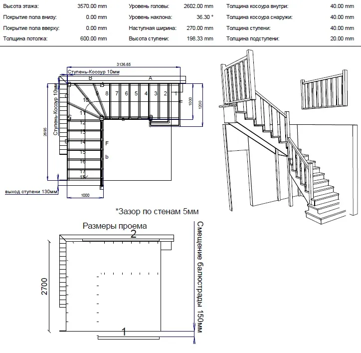 Форма лестницы Г-образная