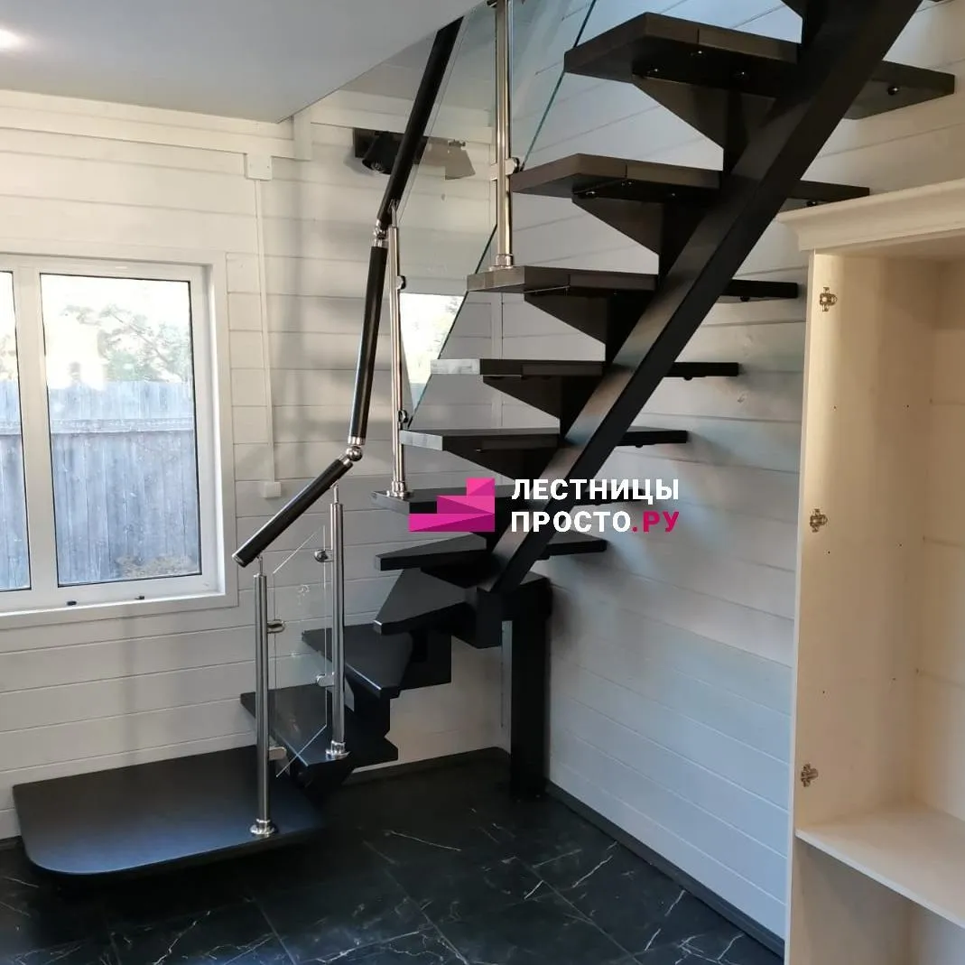 Лестница на центральном каркасе г-обр. металлик, ступени лиственница, LP-151021